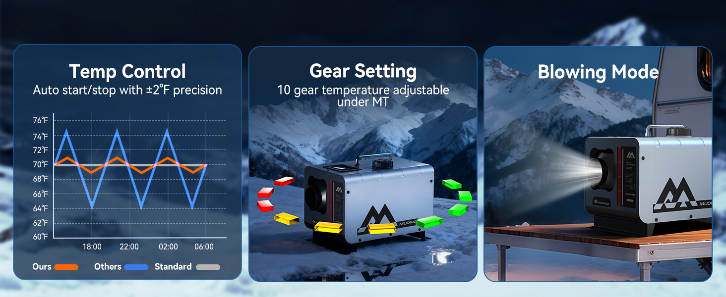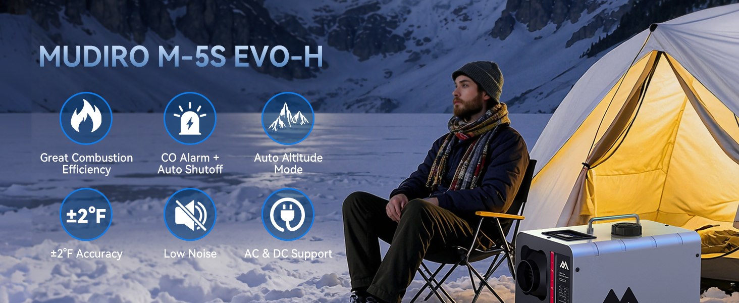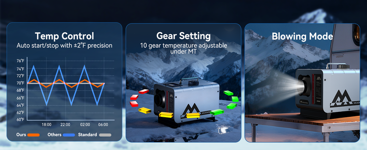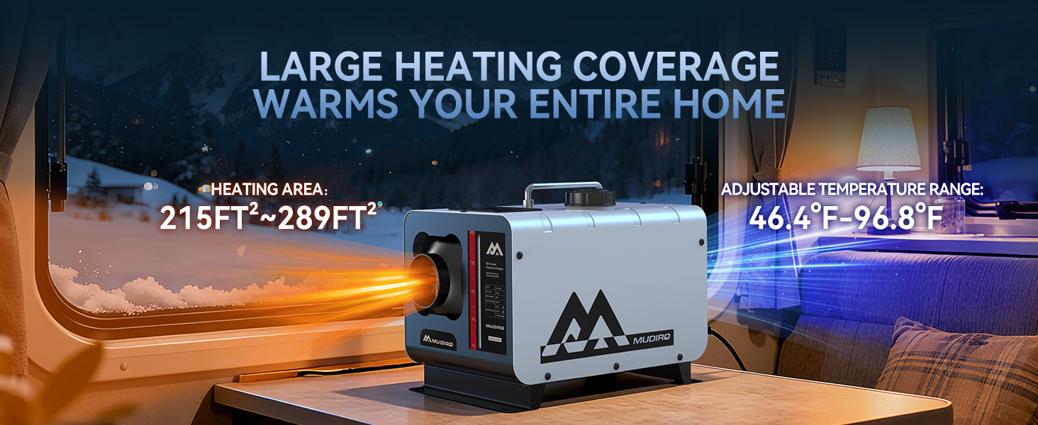 Delivers powerful warmth for spaces up to 289 sq ft while consuming only 0.12–0.36L of fuel per hour. Starts reliably even at -40°F, with wide temperature settings for personalized comfort and fuel savings.