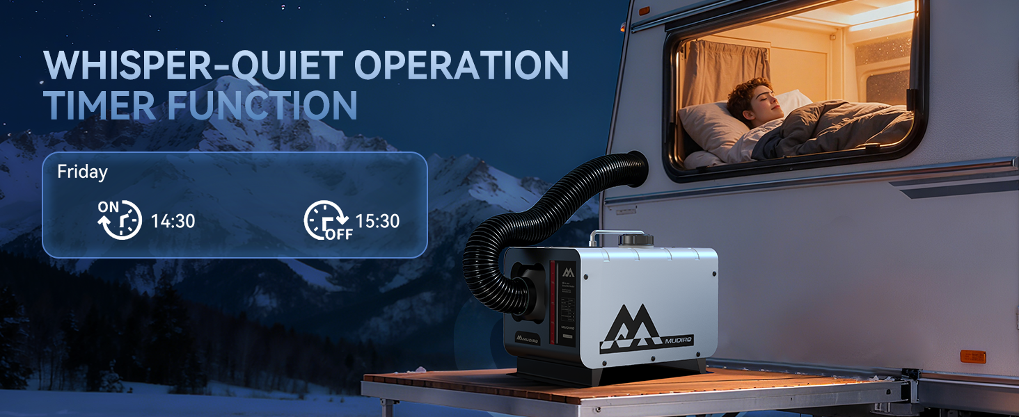 Upgraded noise-reducing fuel pump operates quieter than a library environment. Designed for overnight heating in campers or RVs without disrupting sleep or focus.